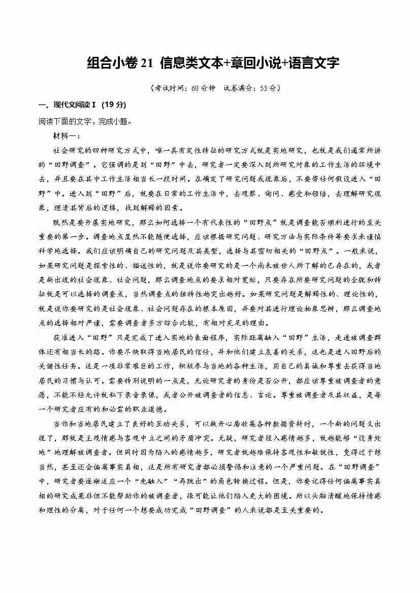 组合小卷21 信息类文本、章回小说、语言文字运用(全国通用)(学生版)