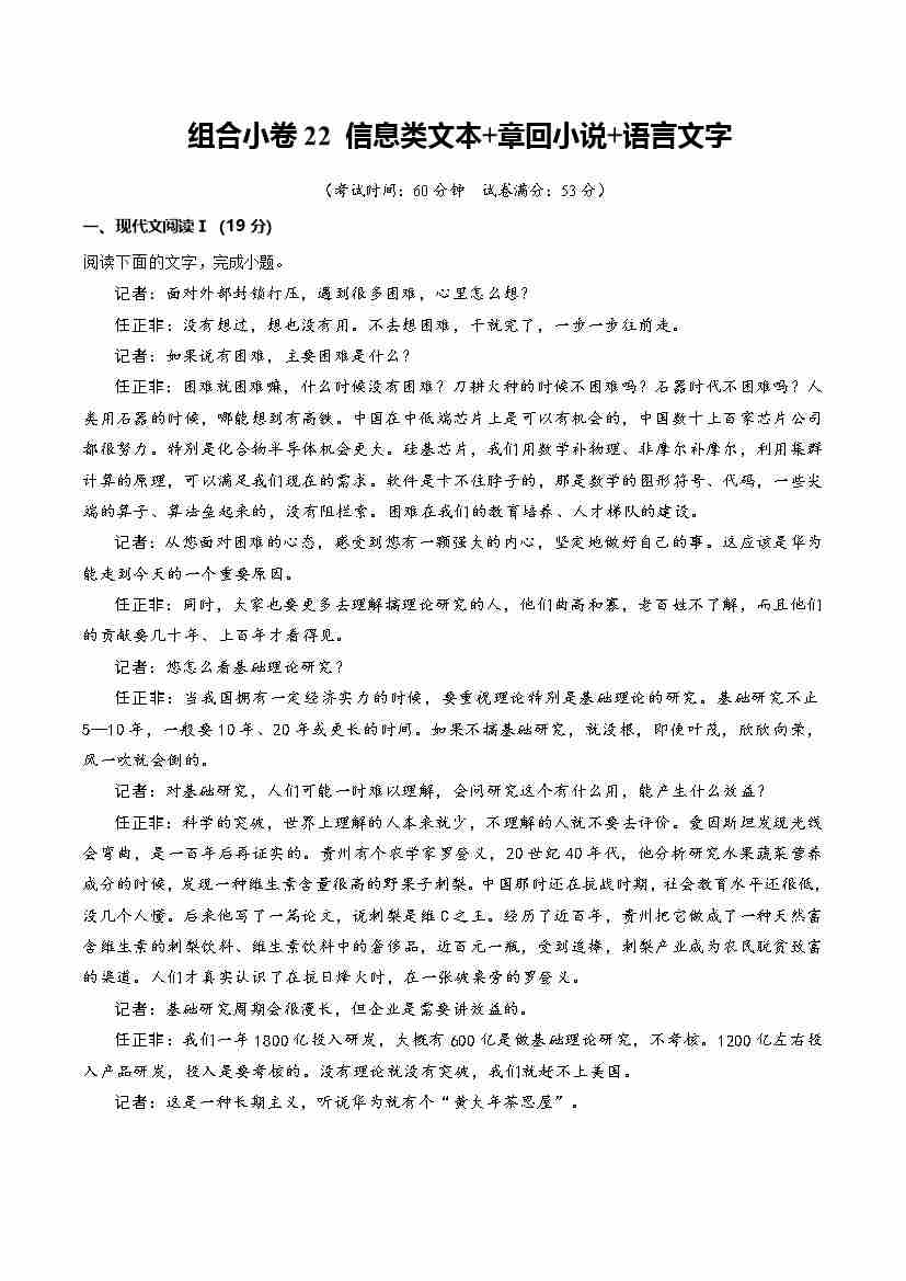 组合小卷22 信息类文本、章回小说、语言文字运用(全国通用)(教师版)