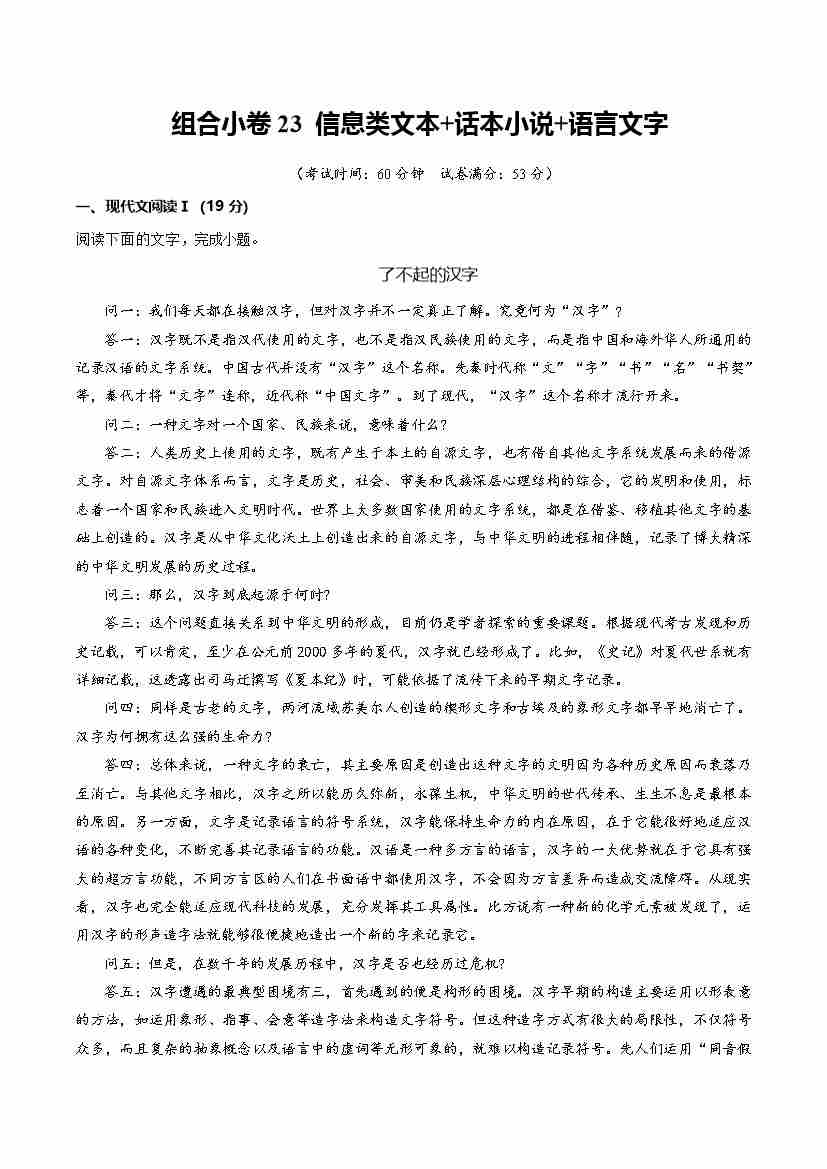 组合小卷23 信息类文本、话本小说、语言文字运用(全国通用)(教师版)