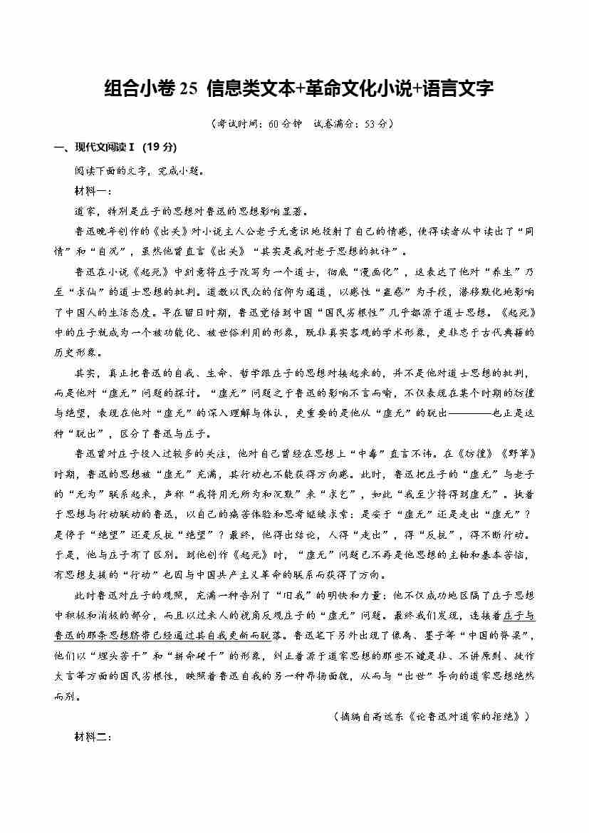 组合小卷25 信息类文本、革命文化小说、语言文字运用(全国通用)(教师版)