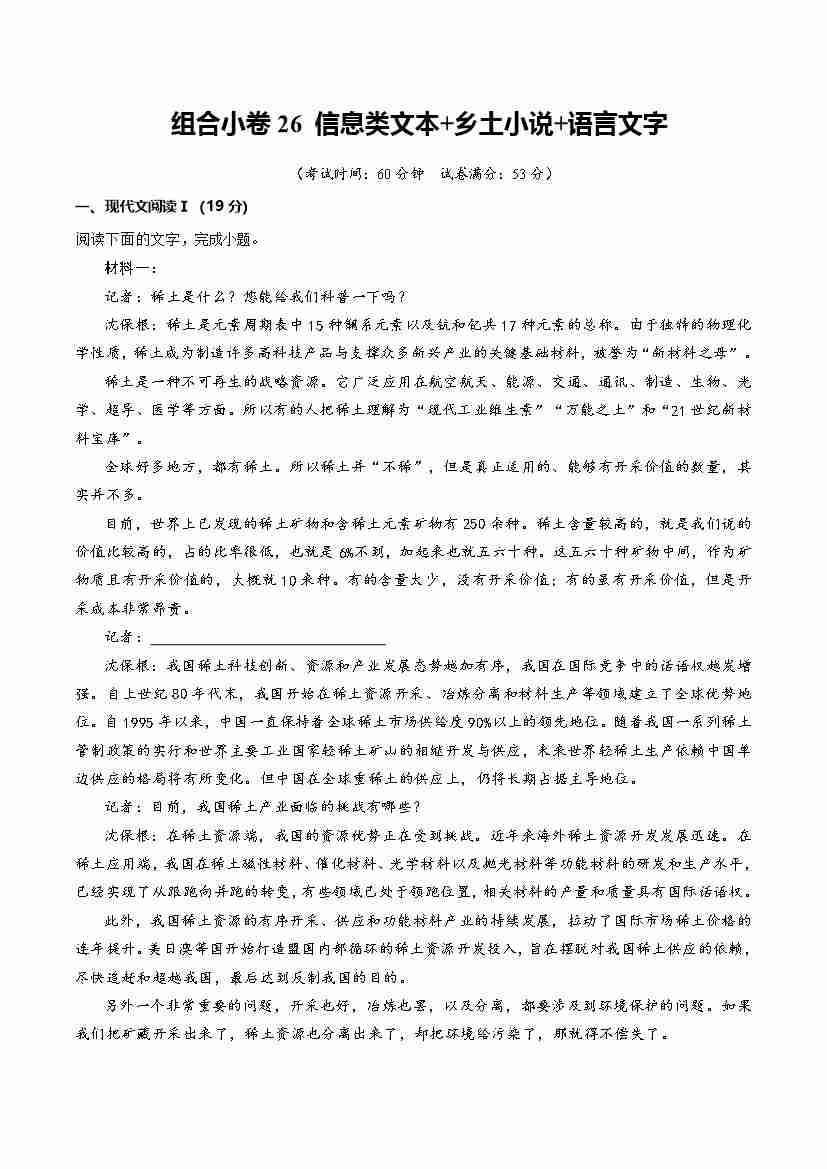 组合小卷26 信息类文本、乡土小说、语言文字运用(全国通用)(教师版)