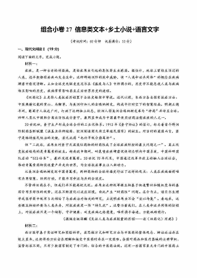 组合小卷27 信息类文本、乡土小说、语言文字运用(全国通用)(学生版)