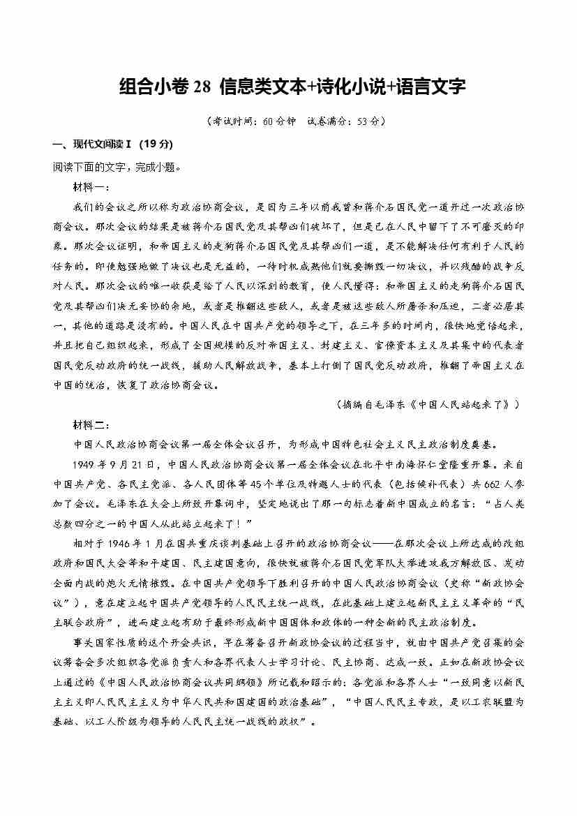 组合小卷28 信息类文本、诗化小说、语言文字运用(全国通用)(教师版)