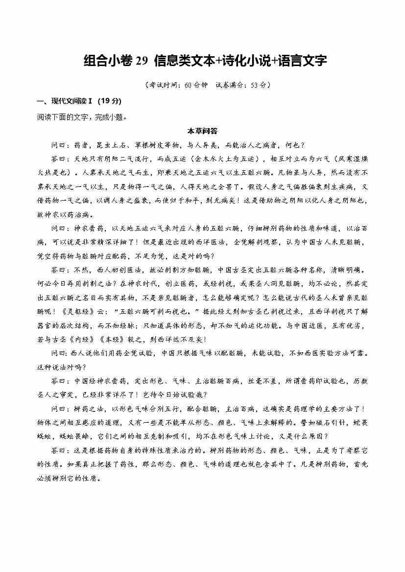 组合小卷29 信息类文本、诗化小说、语言文字运用(全国通用)(学生版)