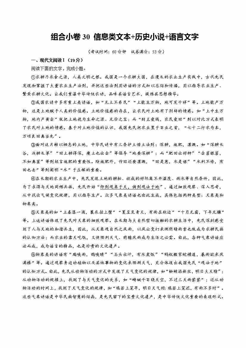 组合小卷30 信息类文本、历史小说、语言文字运用(全国通用)(教师版)