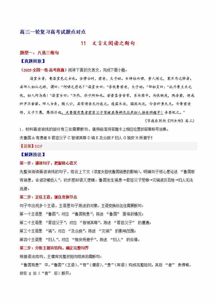 11 文言文阅读之断句(解析版)
