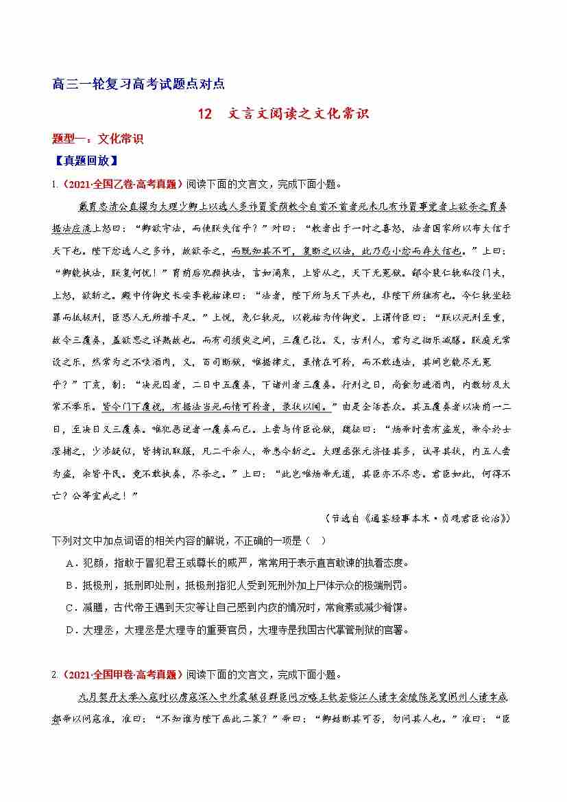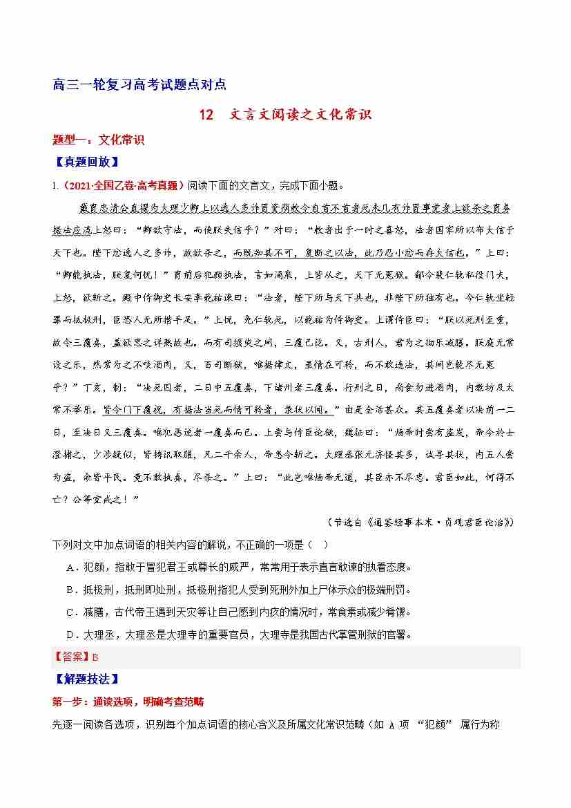 12 文言文阅读之文化常识(原卷版)