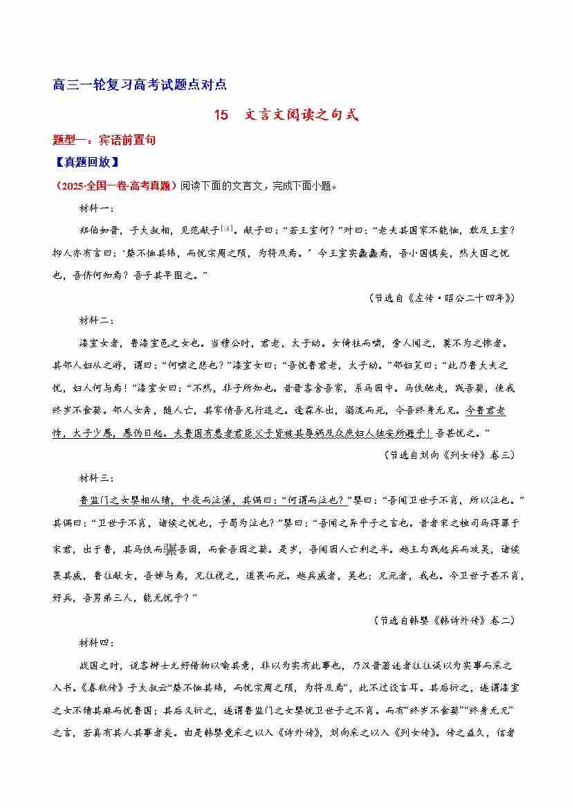 15 文言文阅读之句式(原卷版)