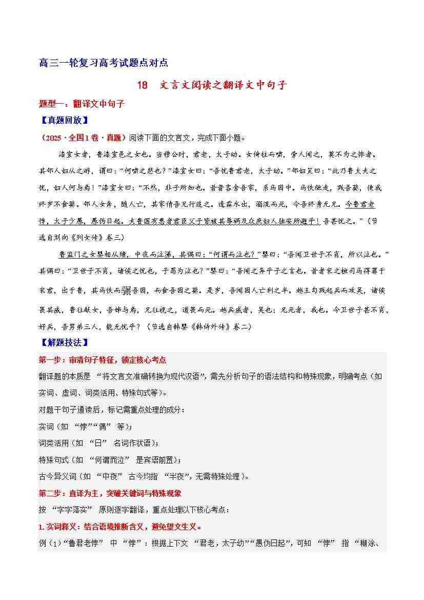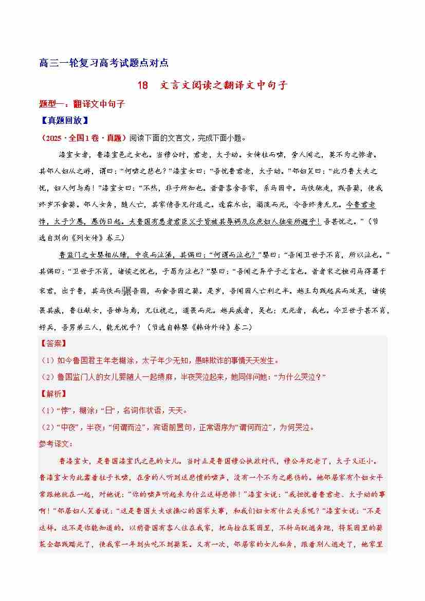 18 文言文阅读之翻译文中句子(原卷版)