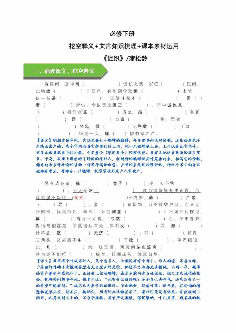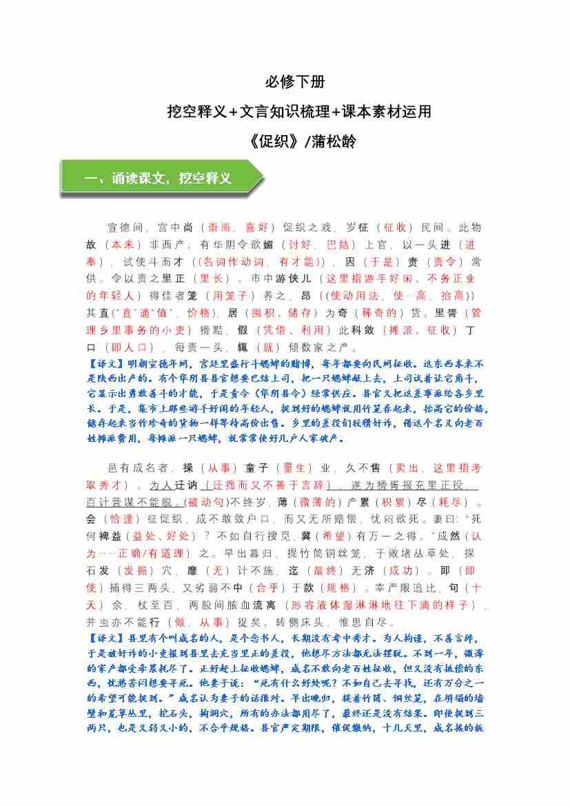 《促织》文言知识梳理及写作取材(教师版)-14页