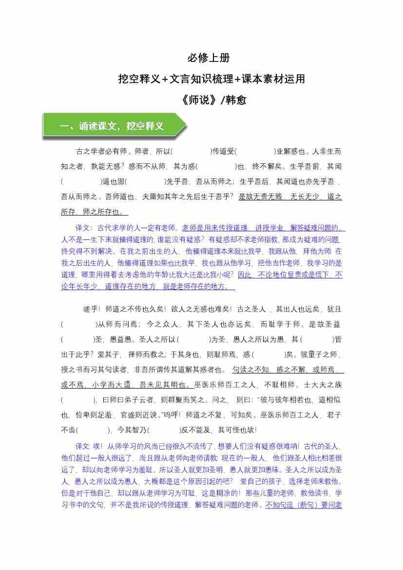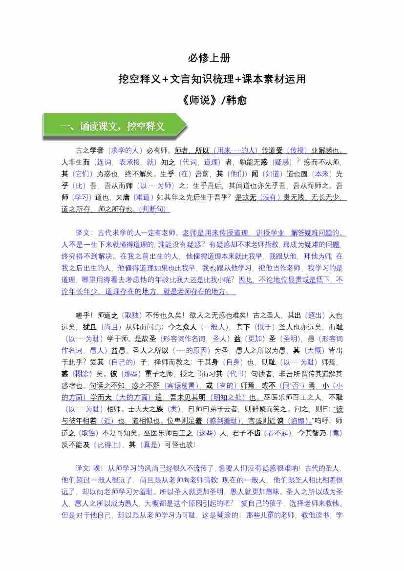 《师说》文言知识梳理与写作取材(教师版)-8页