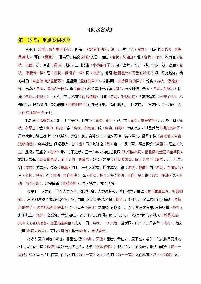 专题07 阿房宫赋、六国论(文言文挖空训练)(全国通用)(答案版)
