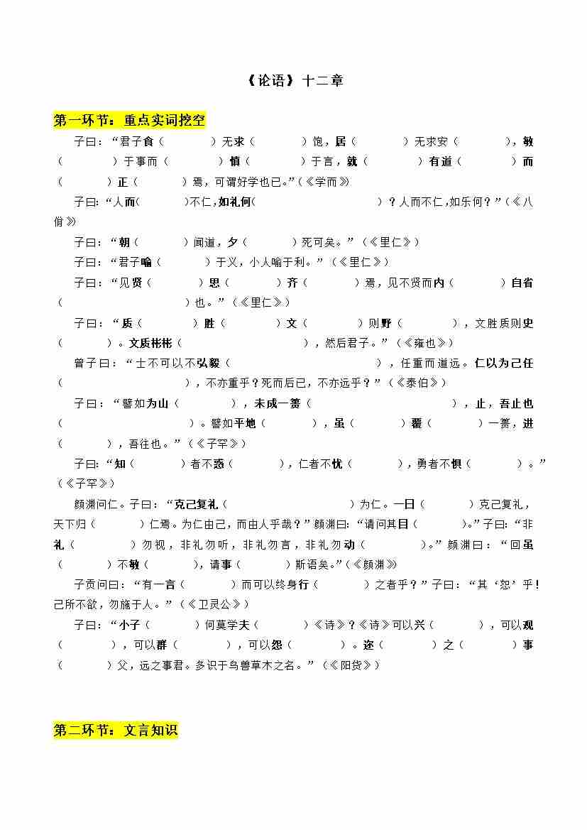 专题08 论语十二章、大学之道、人皆有不忍人之心(文言文挖空训练)(全国通用)(学生版)