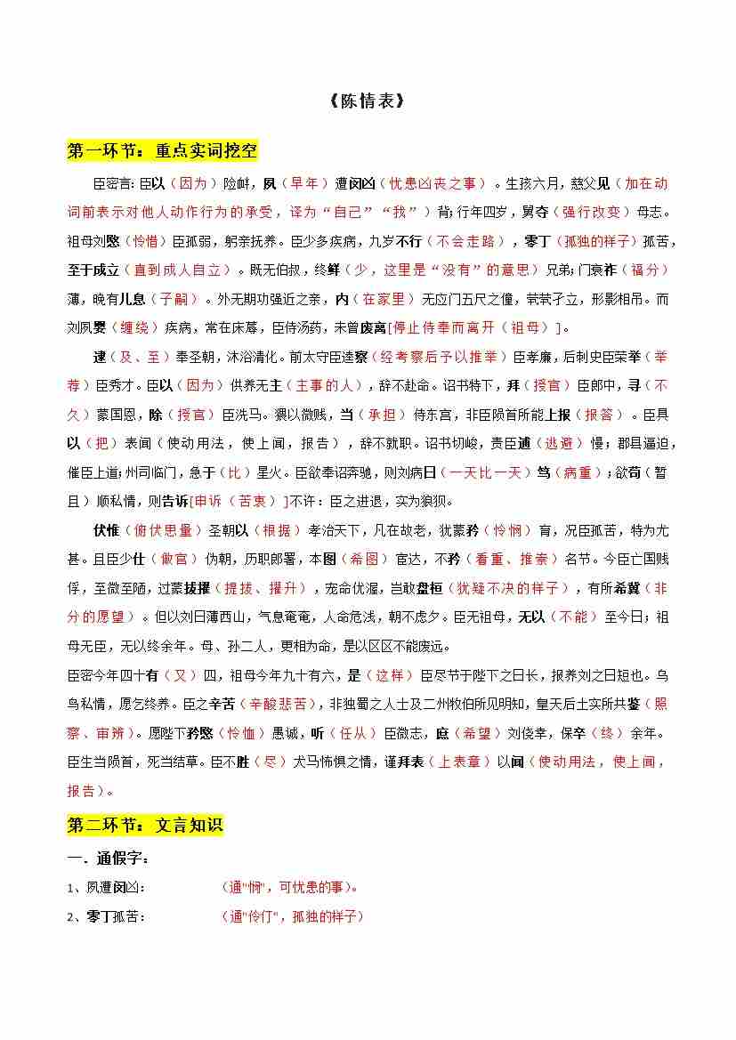 专题11 陈情表、项脊轩志(文言文挖空训练)(全国通用)(答案版)