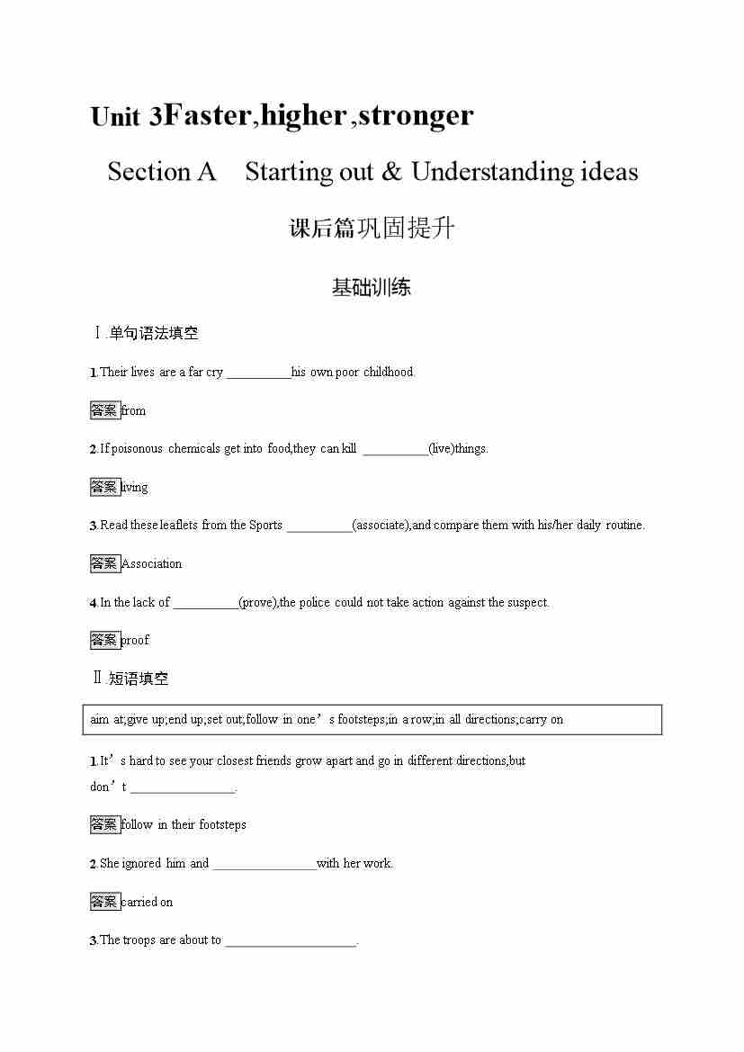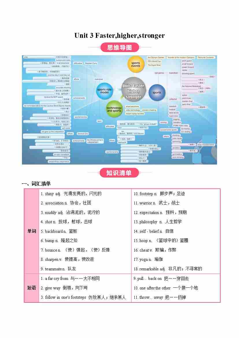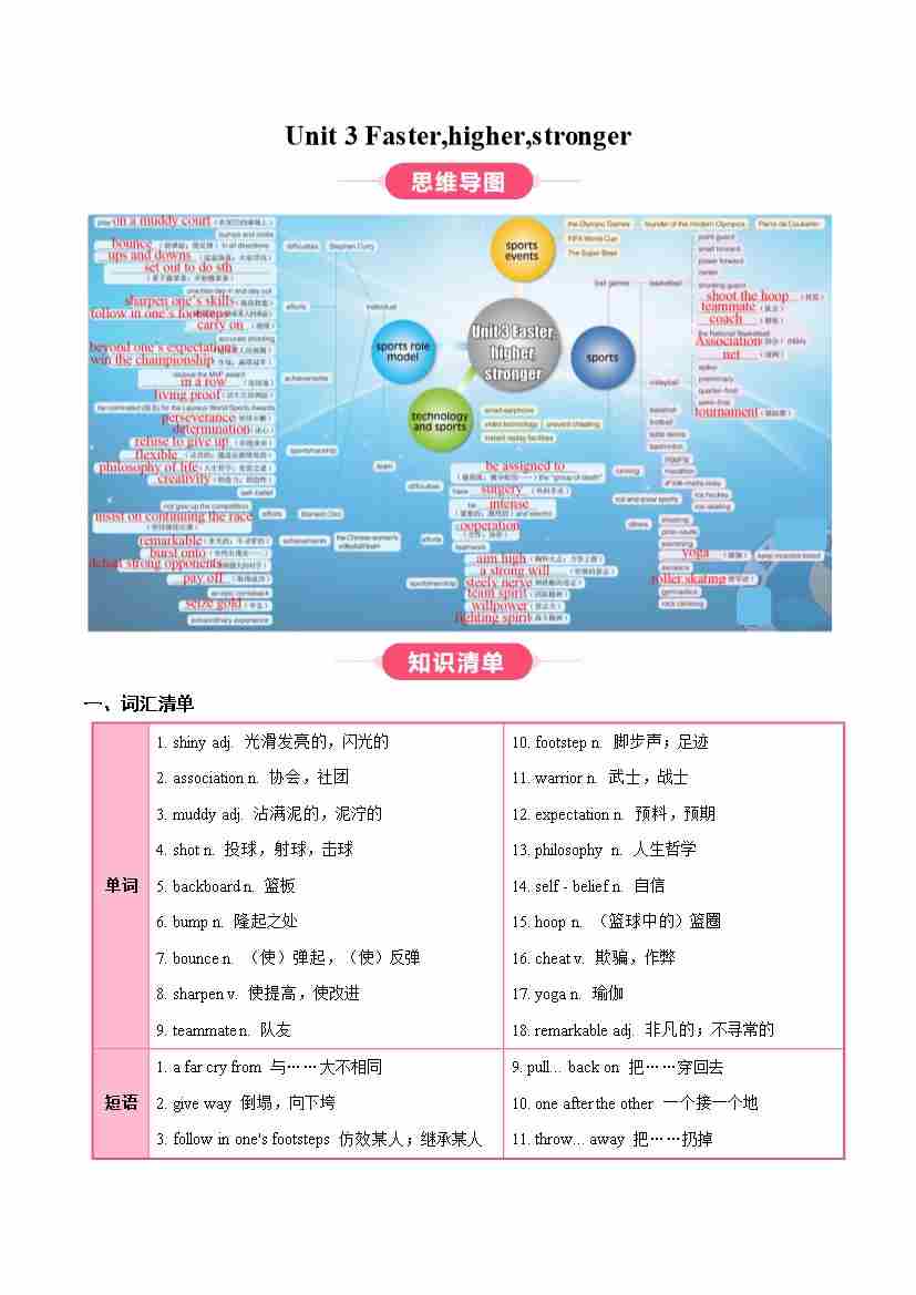 Unit 3 Faster,higher,stronger(知识清单)(教师版)