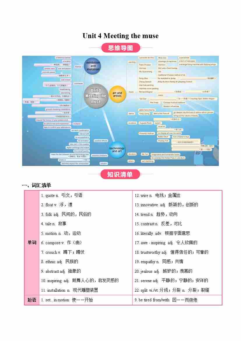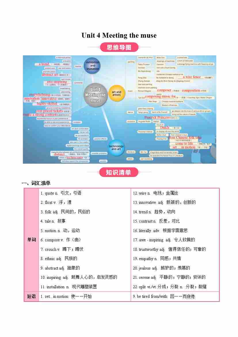 Unit 4 Meeting the muse(知识清单)(教师版)