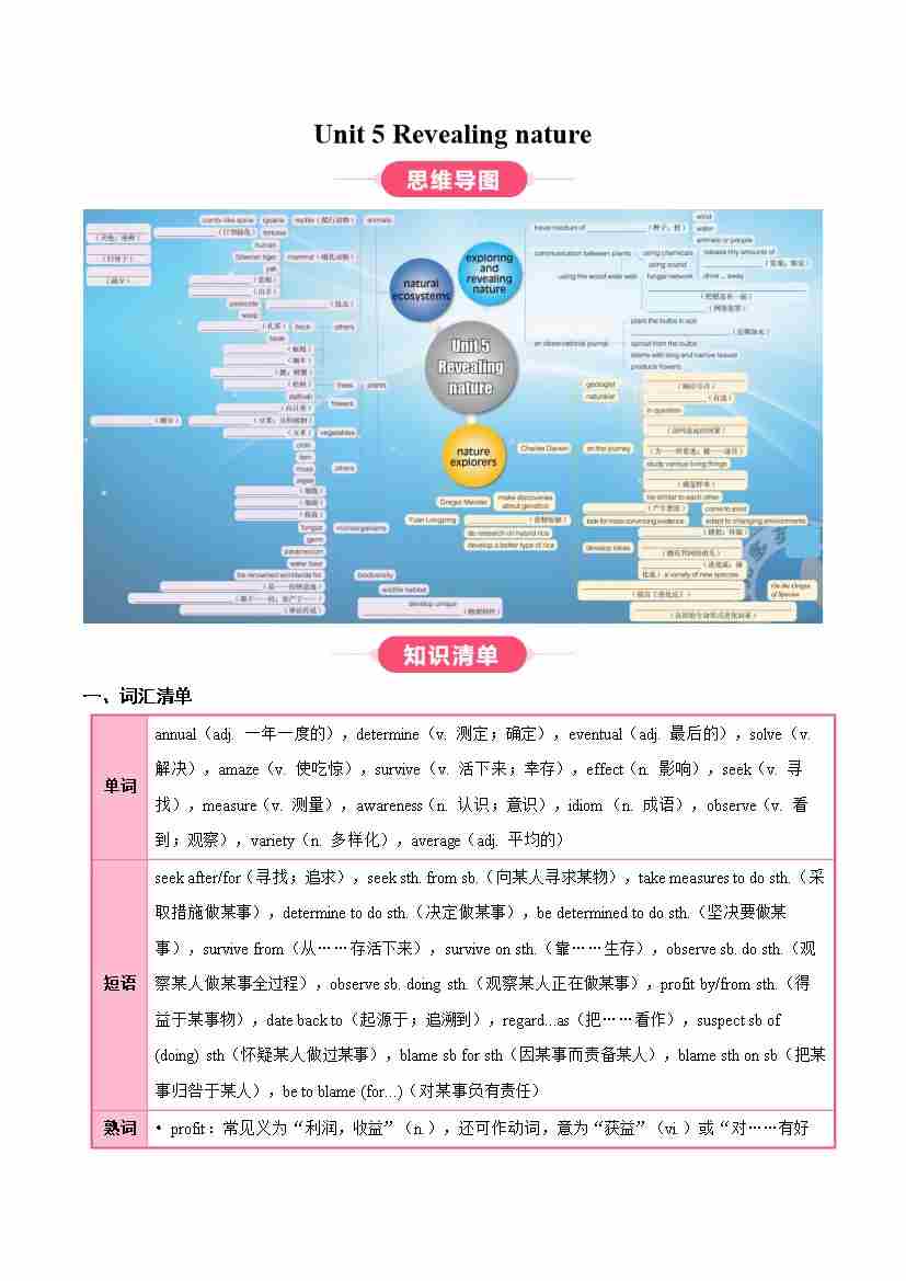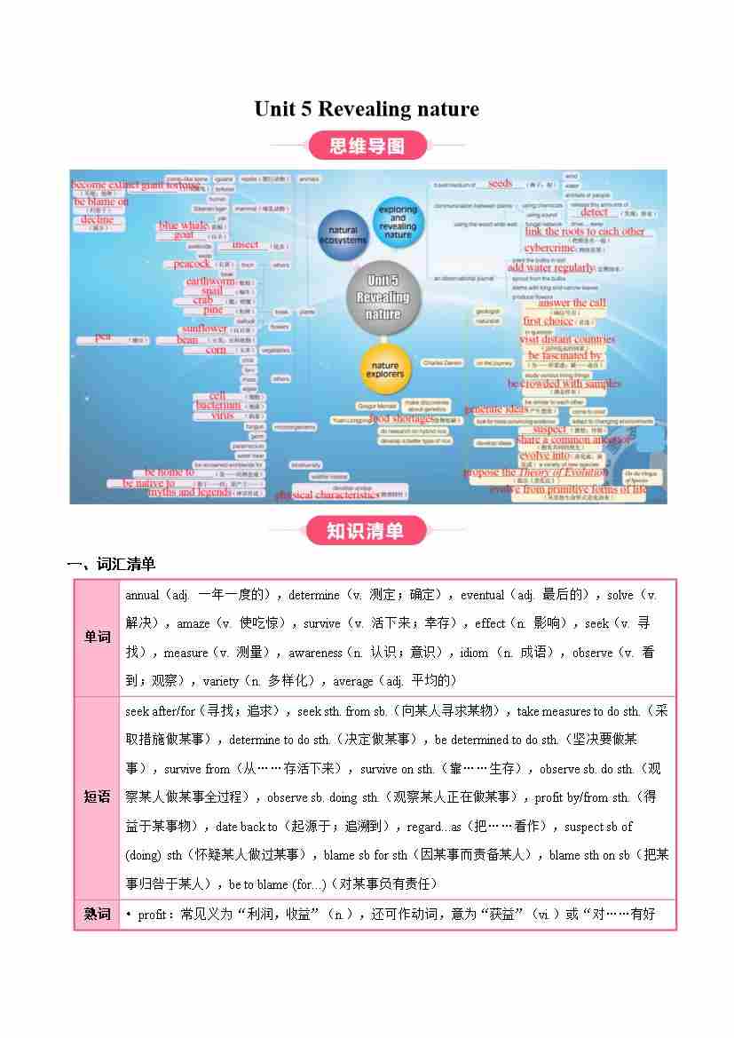 Unit 5 Revealing nature(知识清单)(学生版)