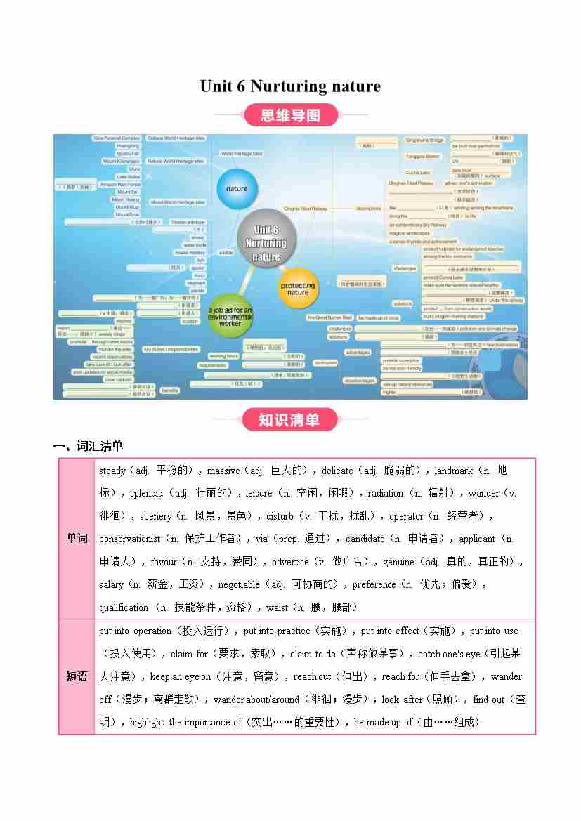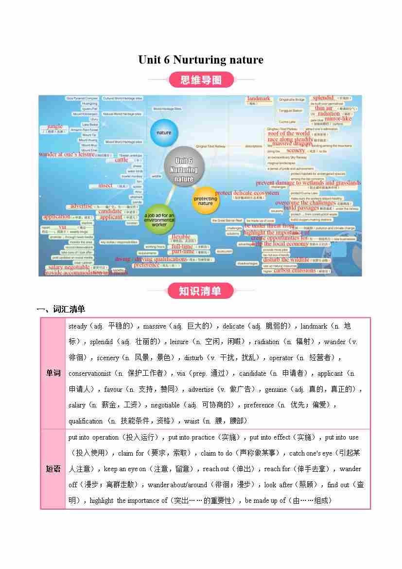 Unit 6 Nurturing nature(知识清单)(学生版)