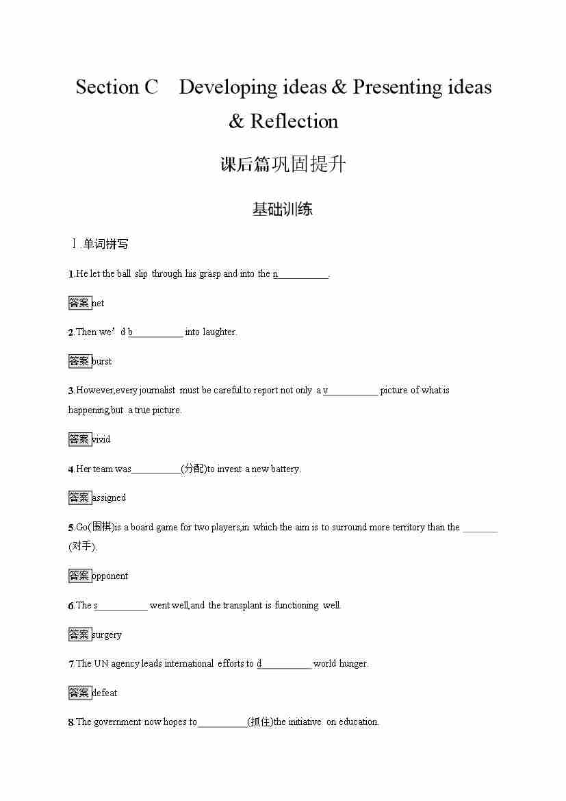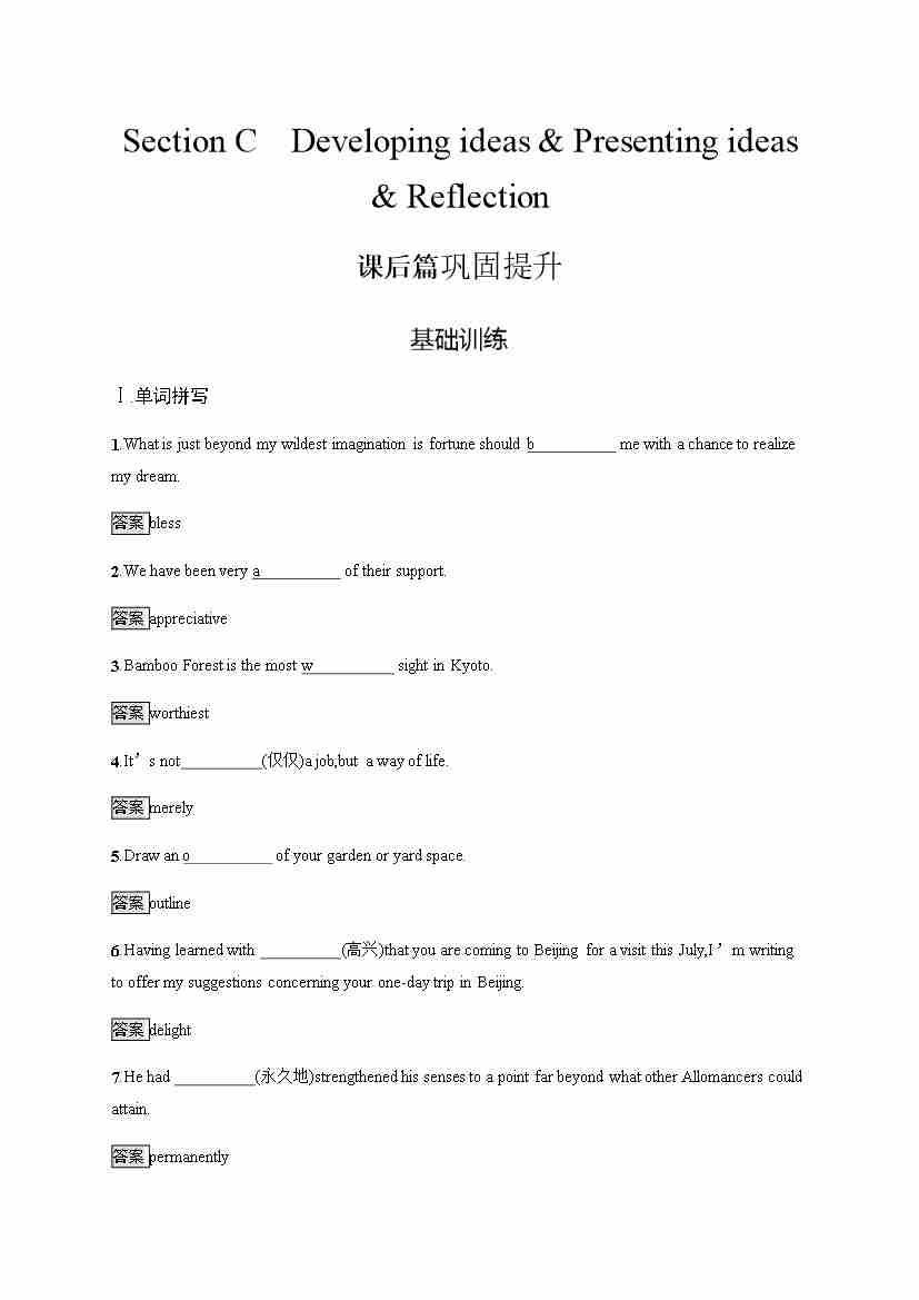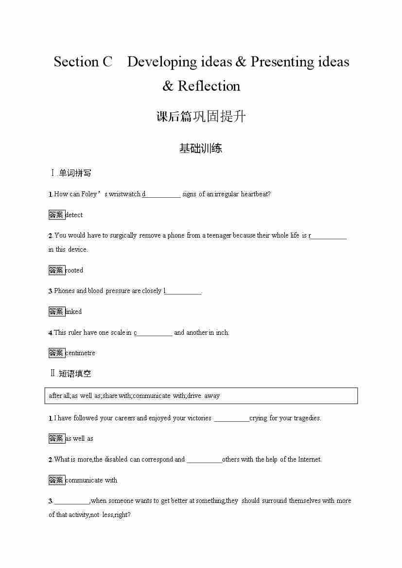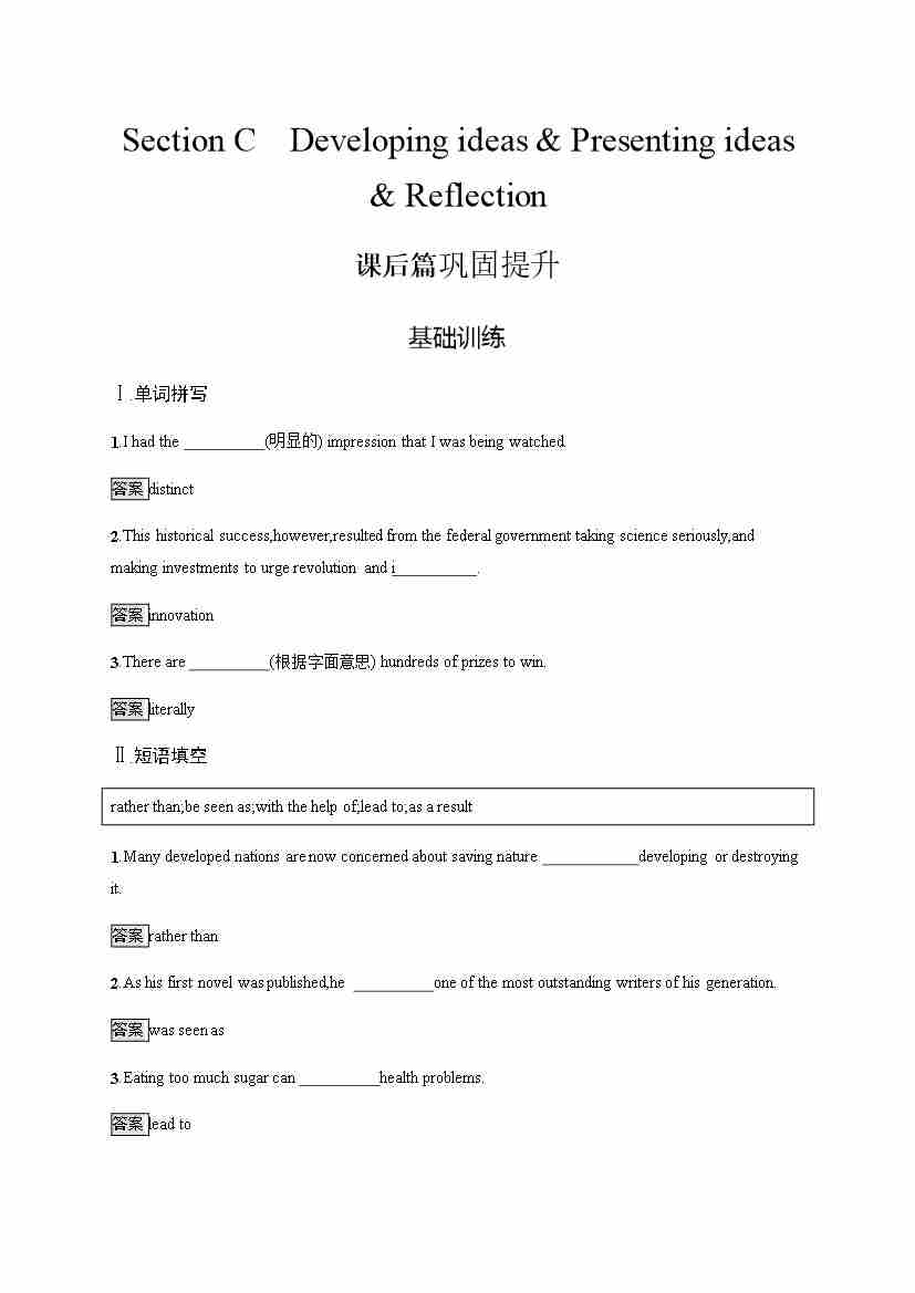 外研版英语选修第一册习题 Unit 2 Section C Developing ideas & Presenting ideas & Reflection