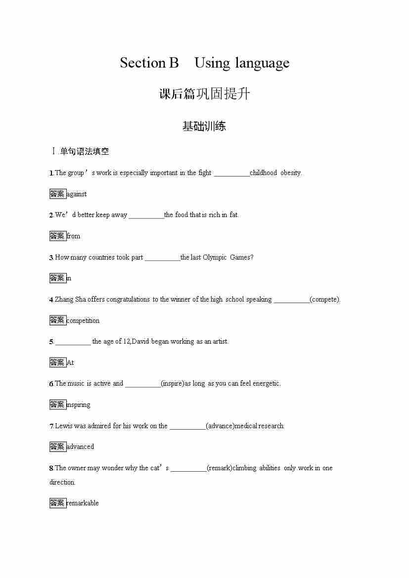 外研版英语选修第一册习题 Unit 3 Section B Using language