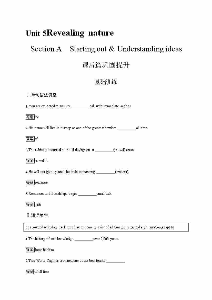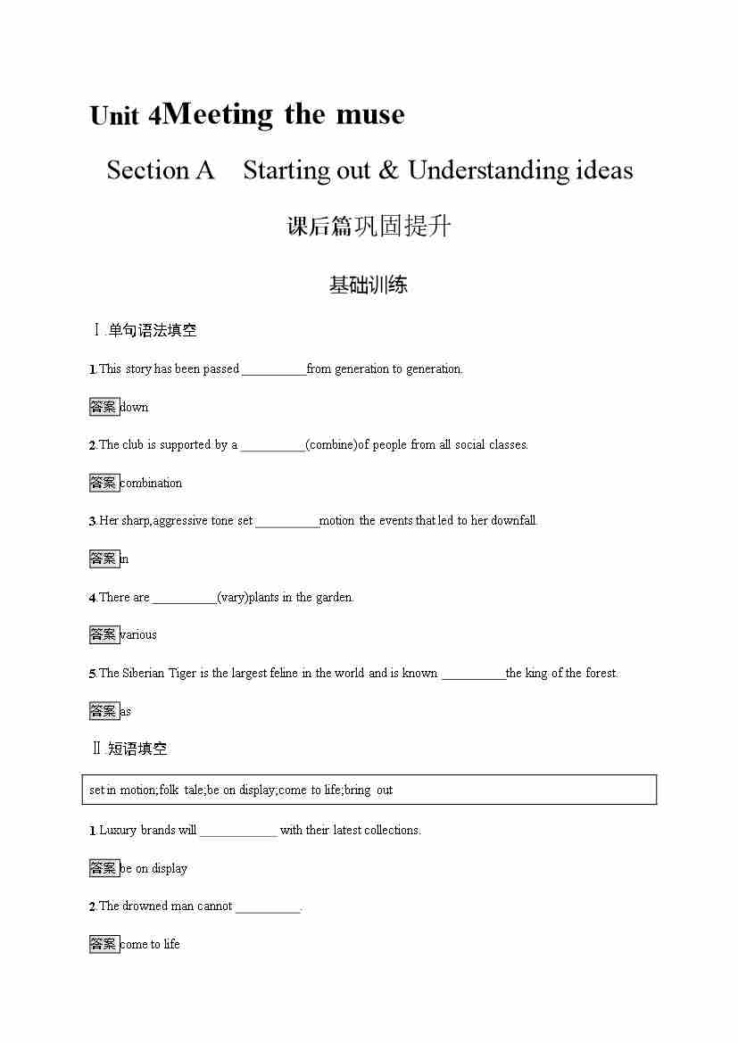 外研版英语选修第一册习题 Unit 5 Section A Starting out & Understanding ideas