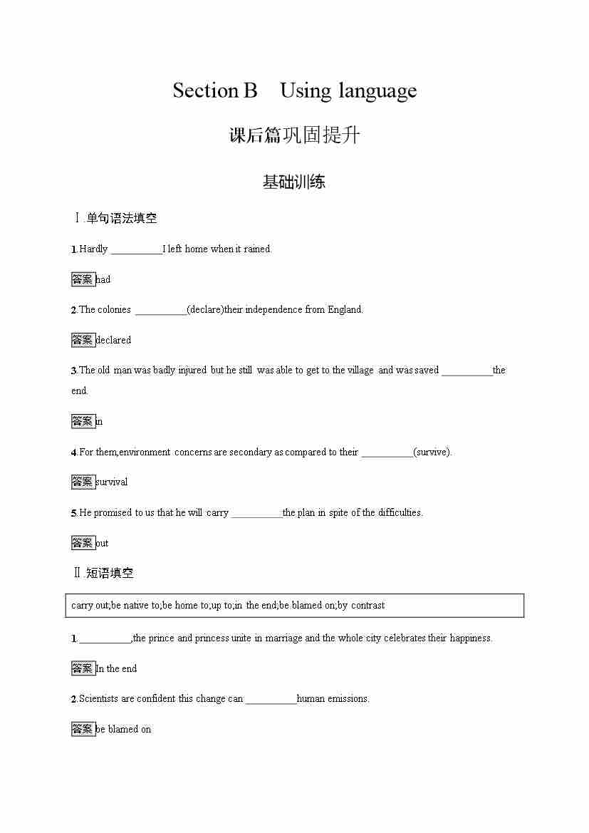 外研版英语选修第一册习题 Unit 5 Section B Using language