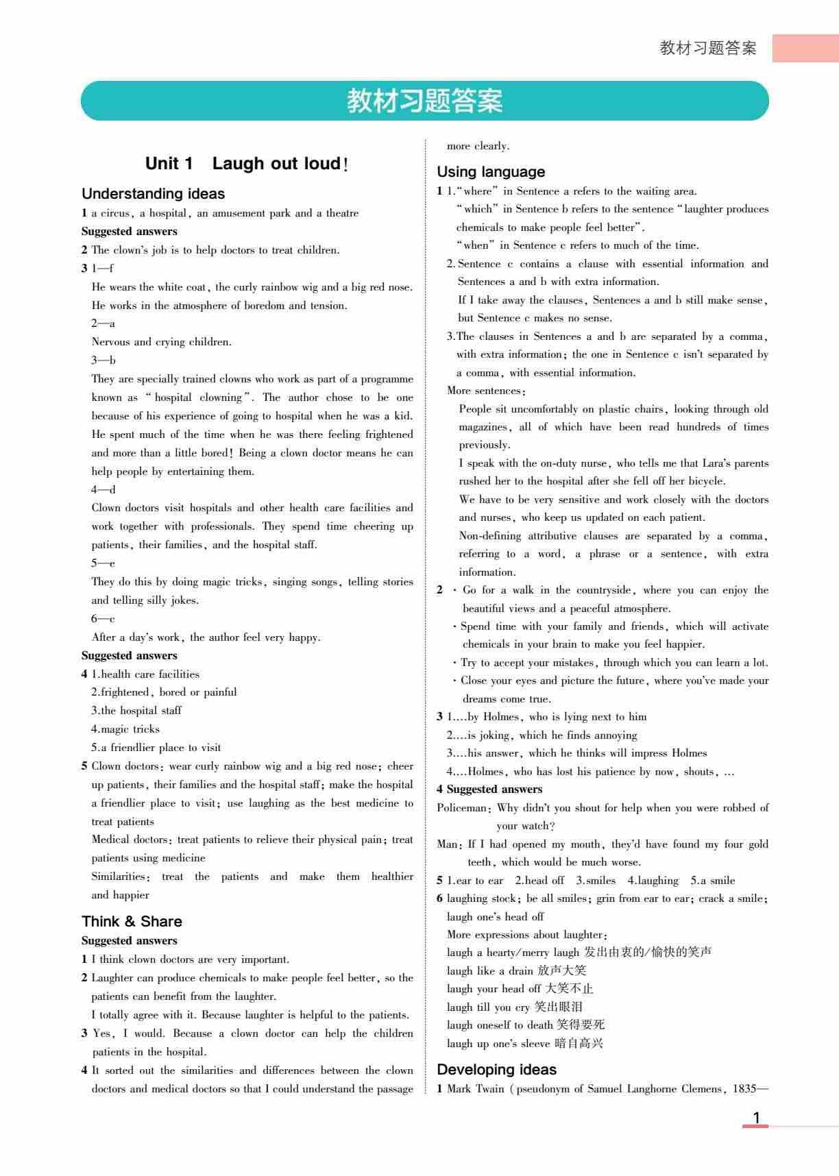 外研选择性必修1教材习题答案-10页