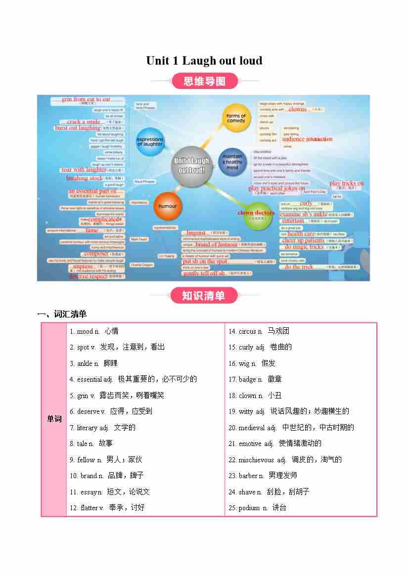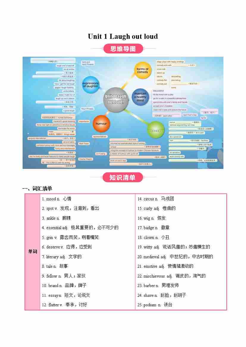 Unit 1 Laugh out loud(知识清单)(教师版)