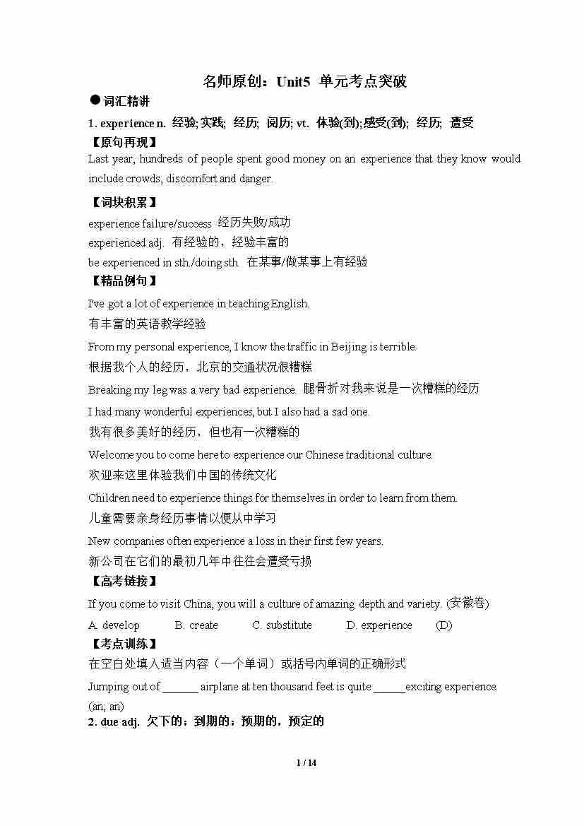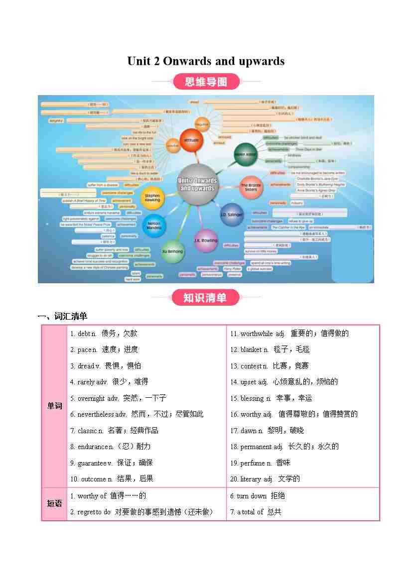 Unit 2 Onwards and upwards(知识清单)(教师版)