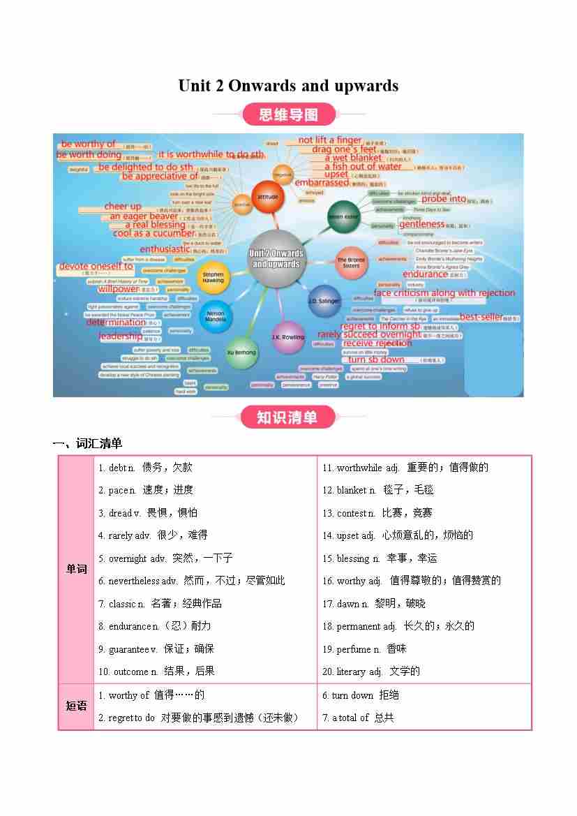 Unit 2 Onwards and upwards(知识清单)(学生版)
