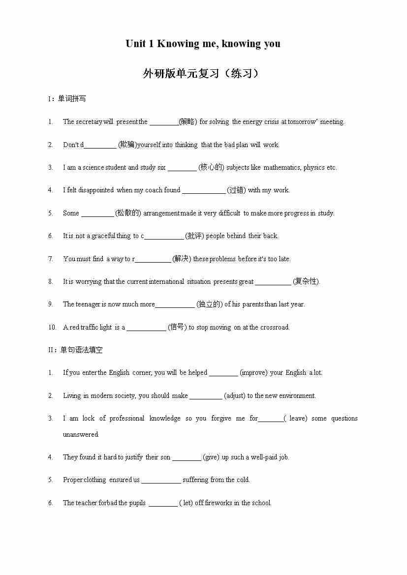 Unit 1 Knowing me, knowing you review 练习(1)(原卷版)