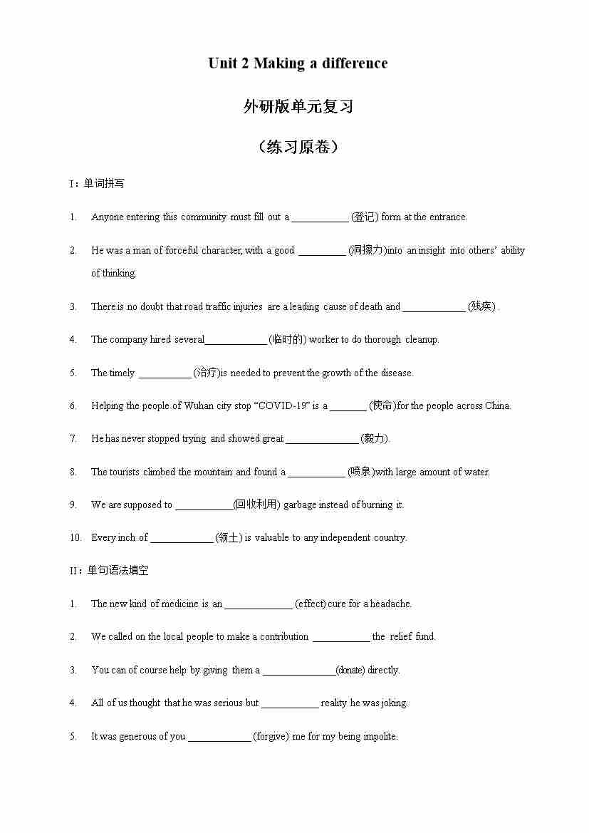 Unit 2 Making a difference review 练习(1)(原卷版)