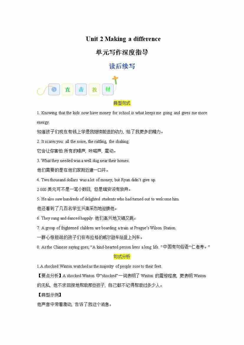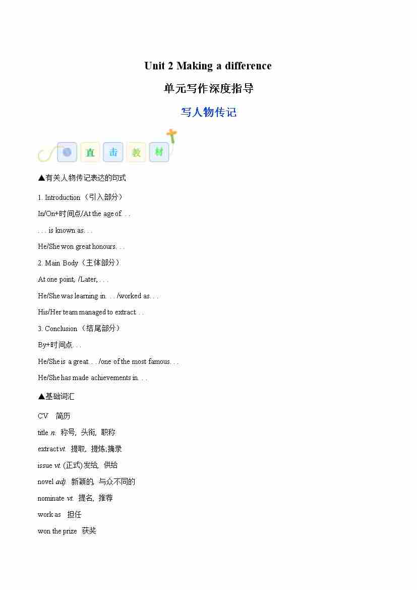 Unit 2 Making a difference(写人物传记)(学生版)