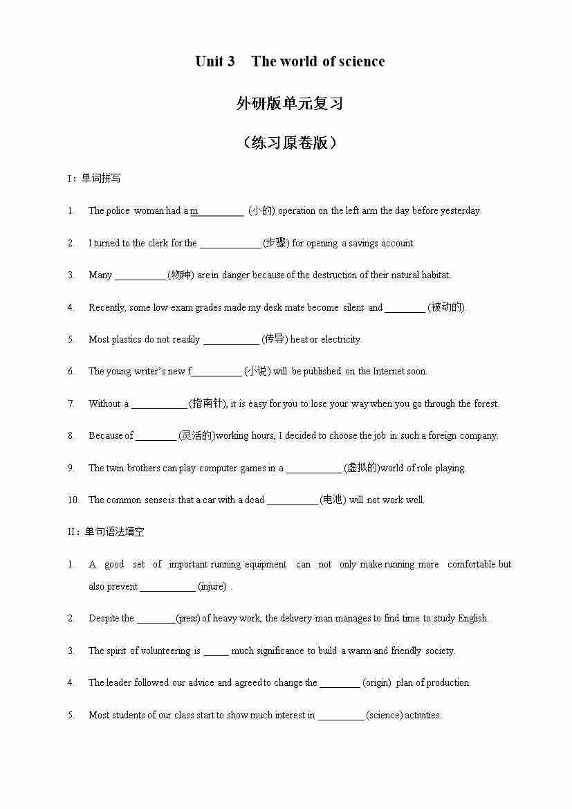 Unit 3 The world of science review 练习(1)(原卷版)