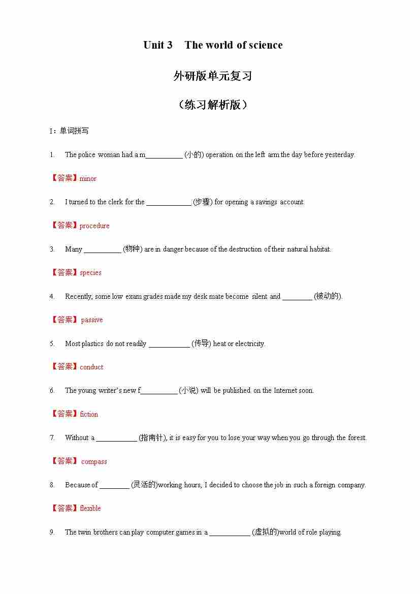 Unit 3 The world of science review 练习(1)(解析版)