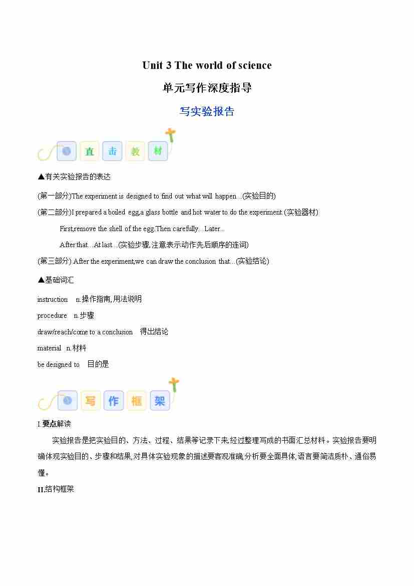 Unit 3 The world of science(写实验报告)(学生版)