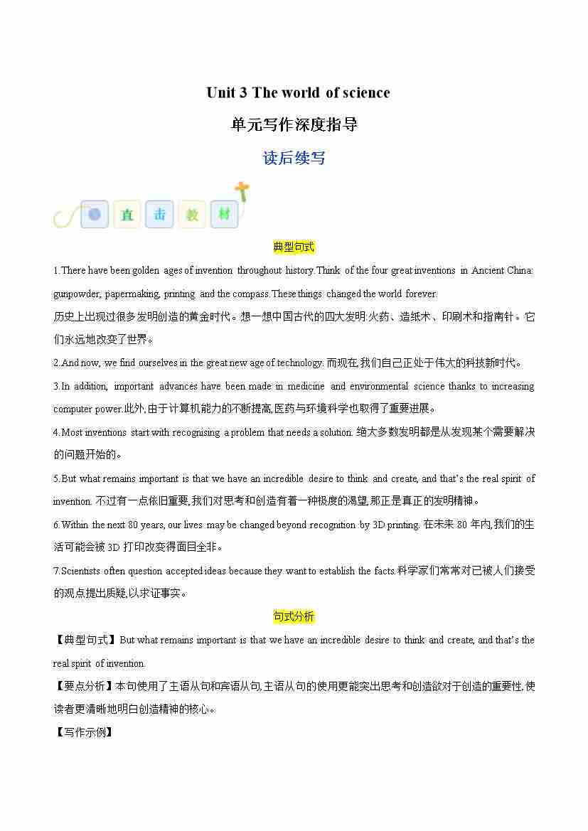 Unit 3 The world of science(读后续写)(学生版)