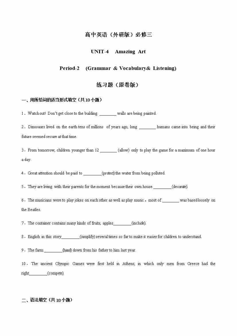 Unit 4 Amazing Art period 2练习(原卷板)