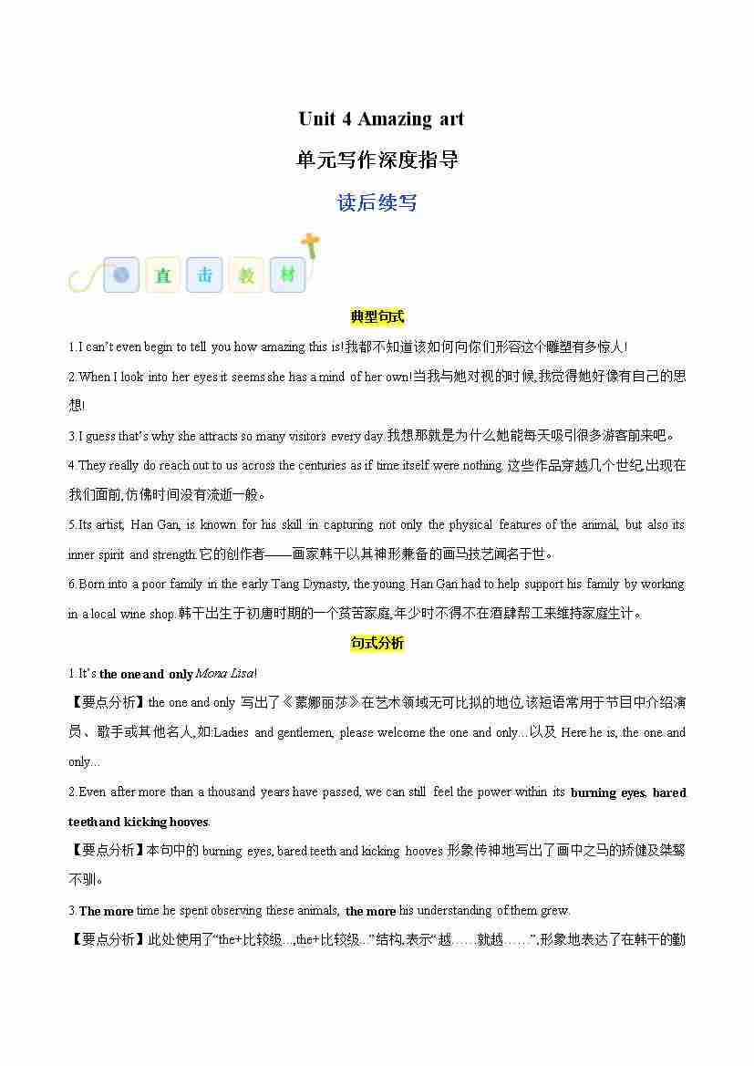 Unit 4 Amazing art(读后续写)(教师版)
