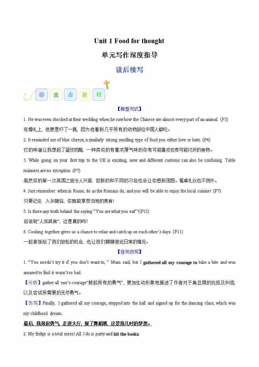 Unit 1 Food for thought 食物与思考(话题阅读精练)(教师版)