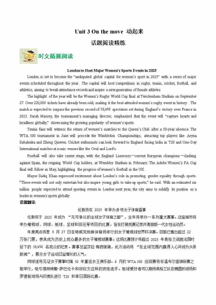 Unit 3 On the move 动起来(话题阅读精练)(学生版)