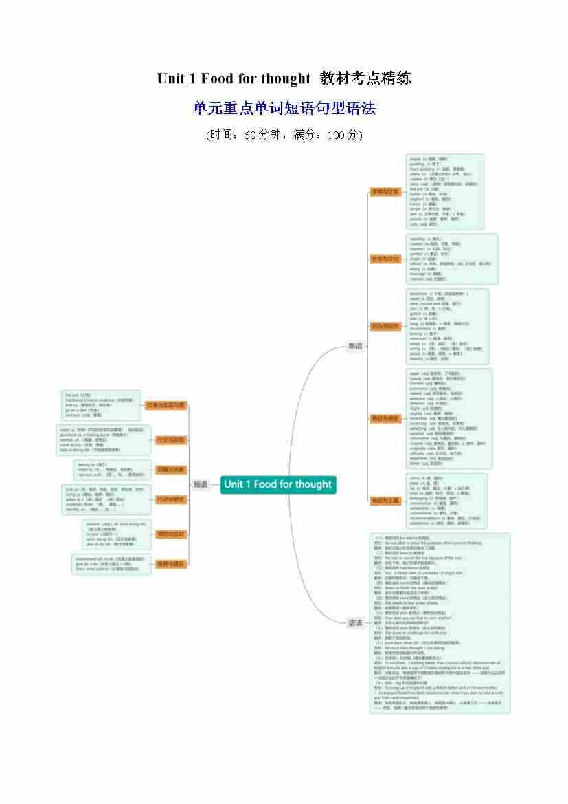 Unit 1 Food for thought 单词短语句型语法(教材考点精练)(教师版)