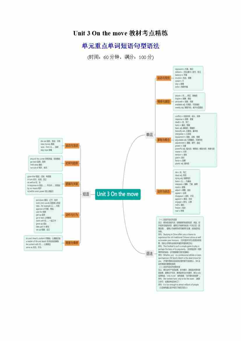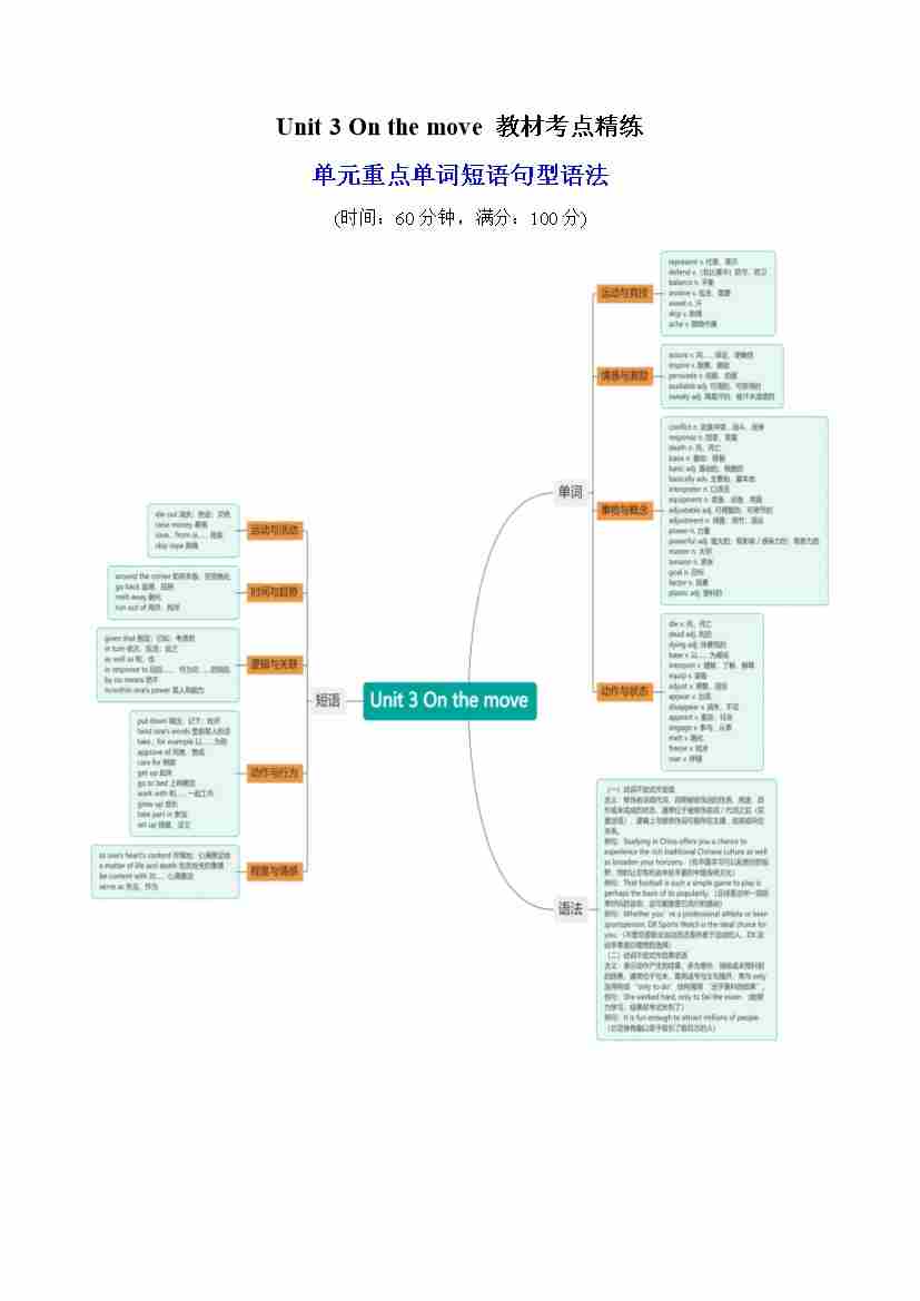 Unit 3 On the move 单词短语句型语法(教材考点精练)(教师版)
