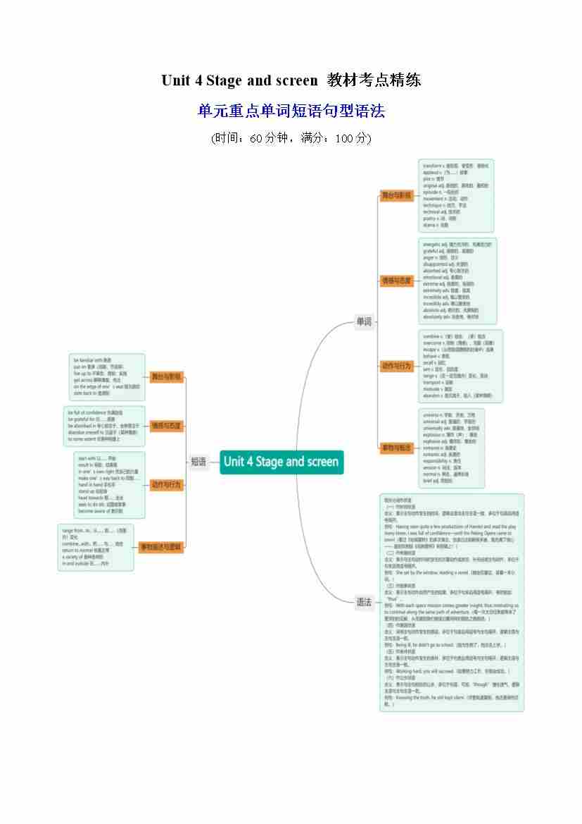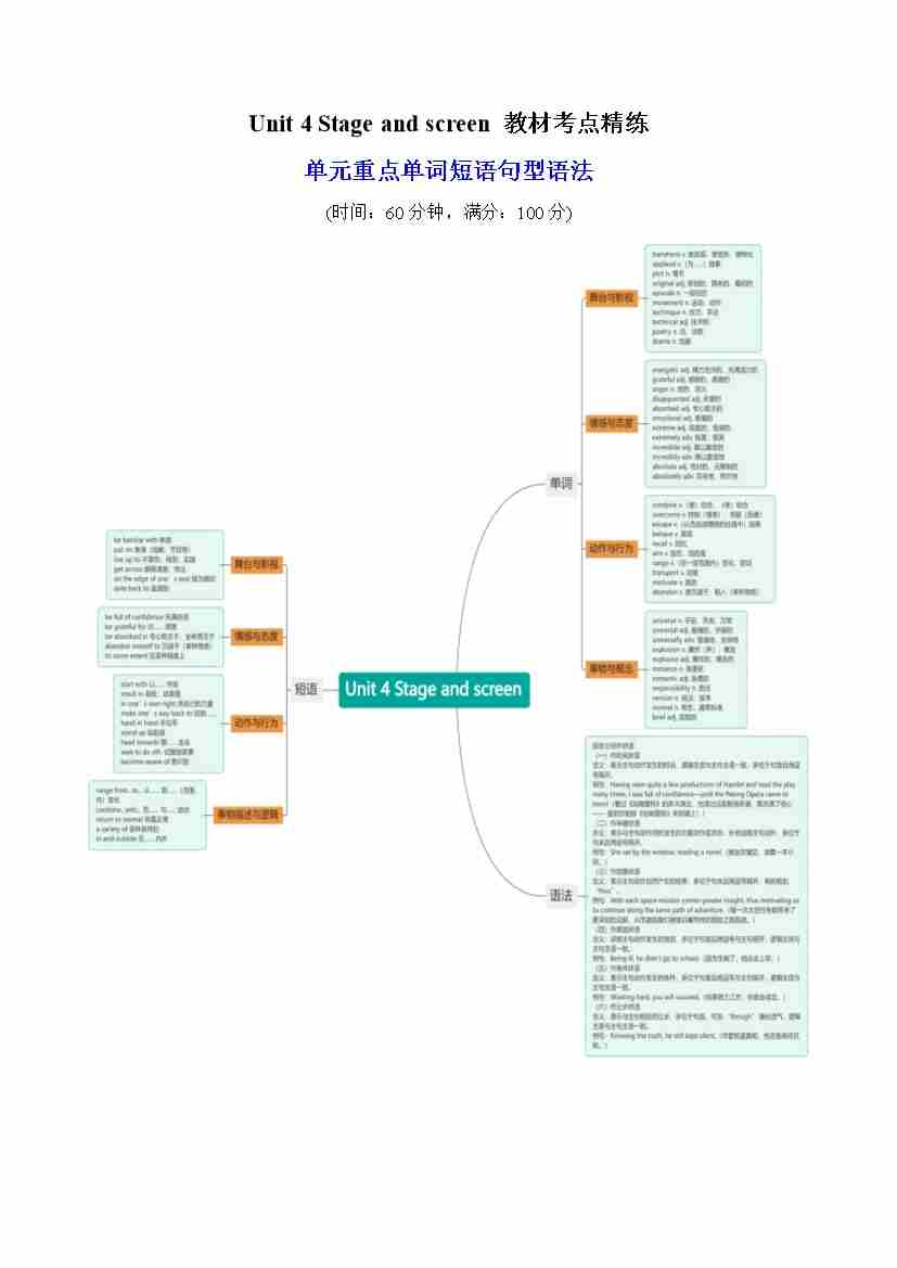 Unit 4 Stage and screen 单词短语句型语法(教材考点精练)(教师版)