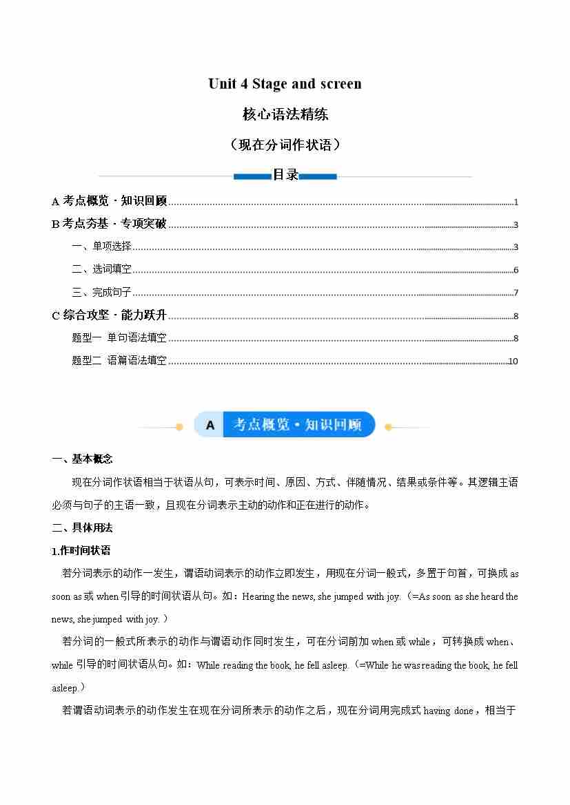 Unit 4 Stage and screen(单元核心语法精练)(学生版)
