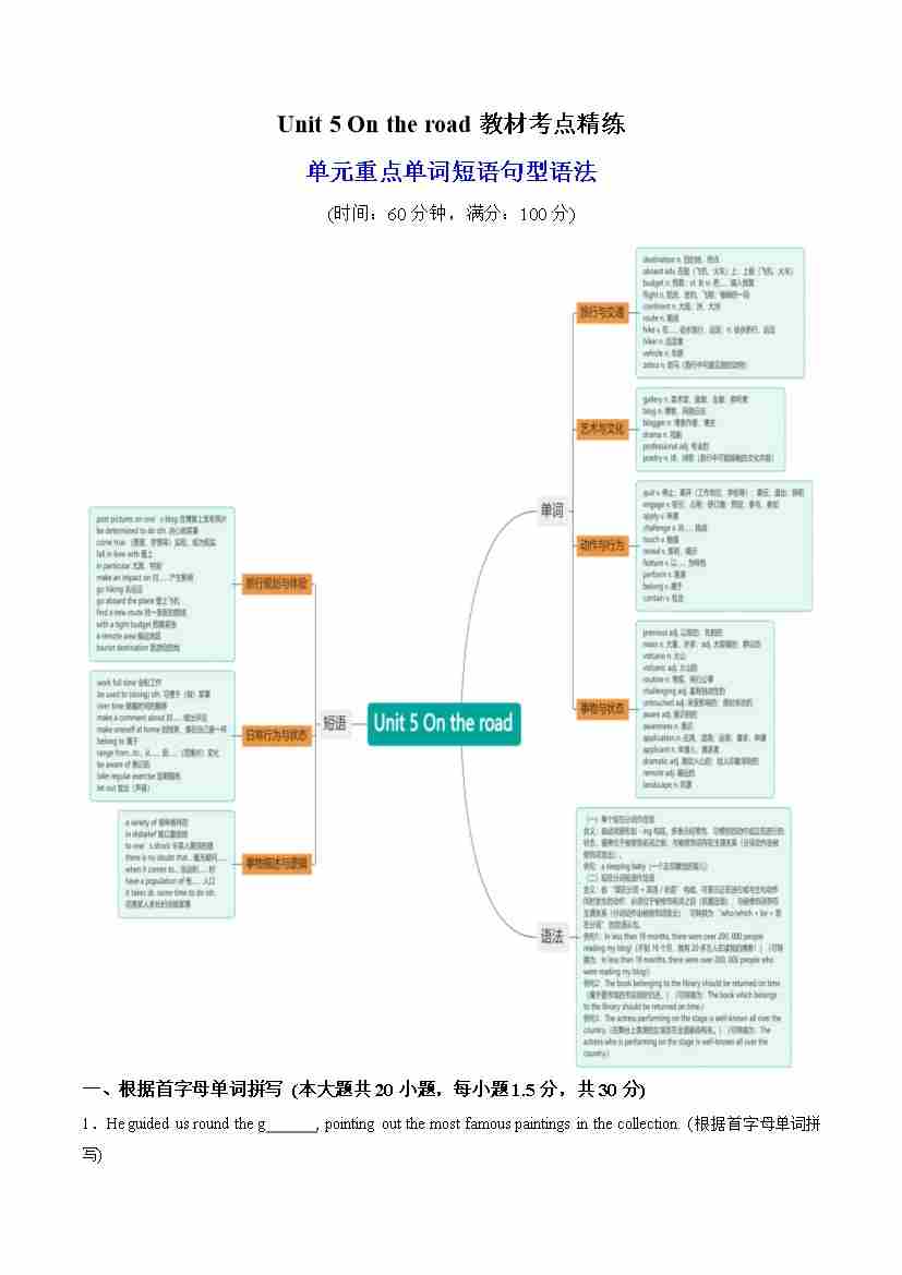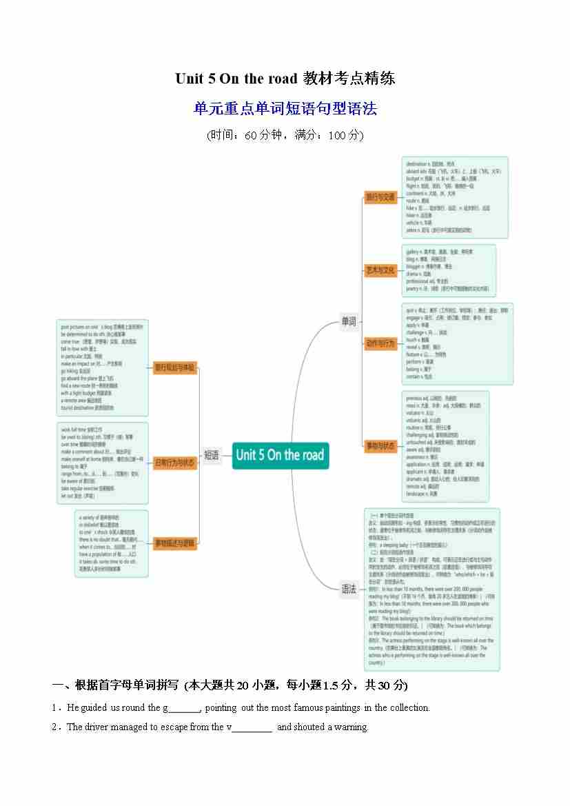 Unit 5 On the road 单词短语句型语法(教材考点精练)(教师版)