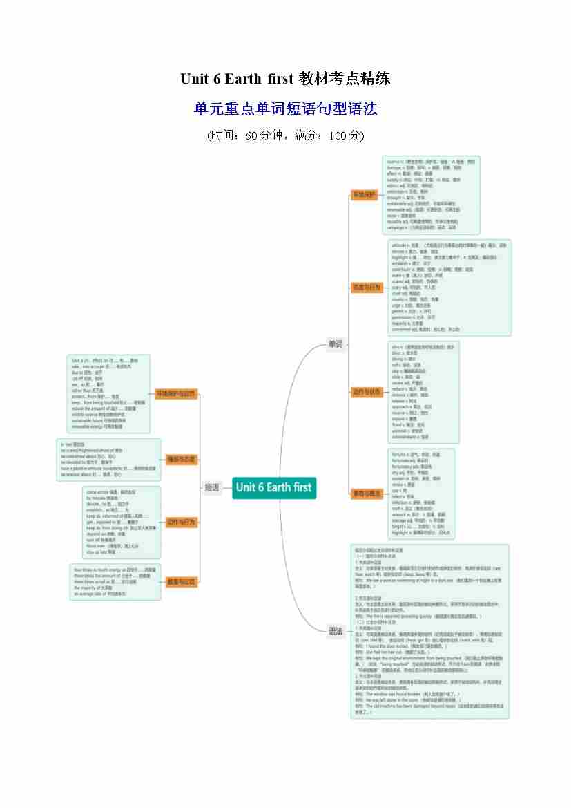 Unit 6 Earth first 单词短语句型语法(教材考点精练)(教师版)