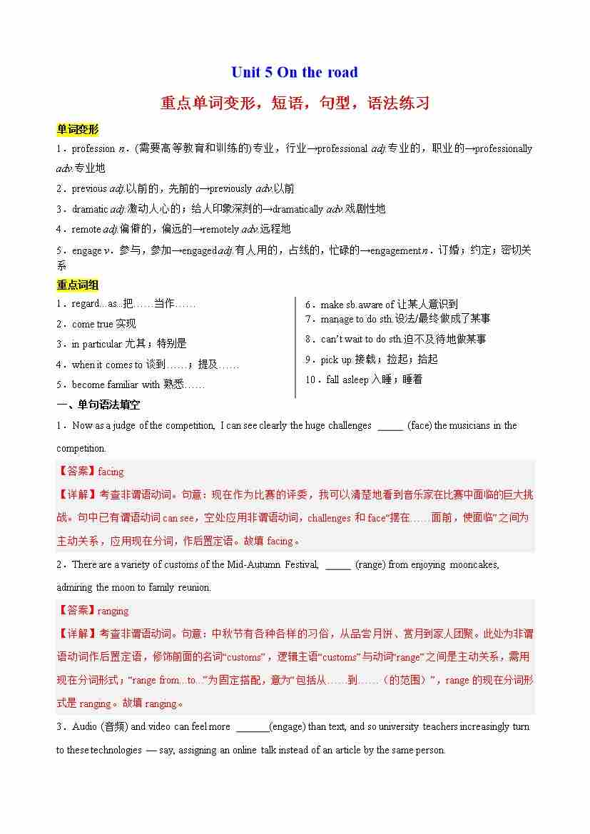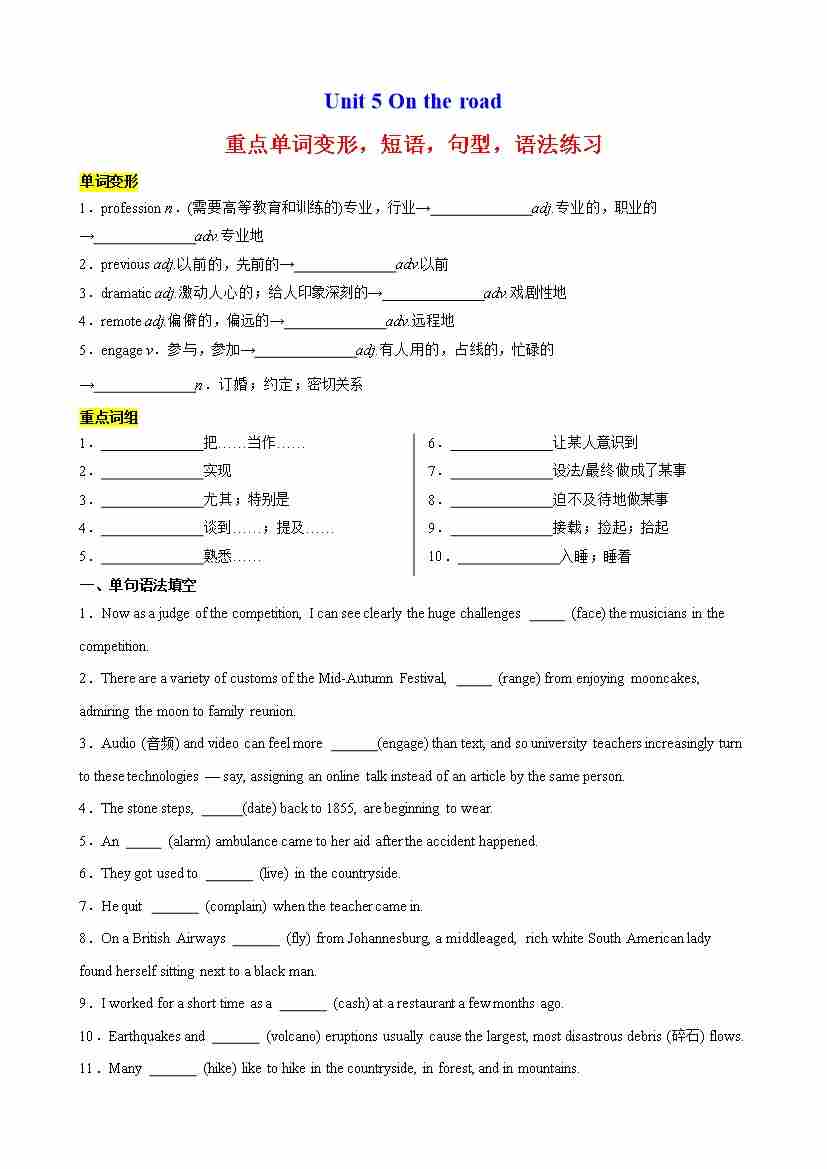 Unit 5 On the road重点单词变形,语法,短语,句型练习(解析版)