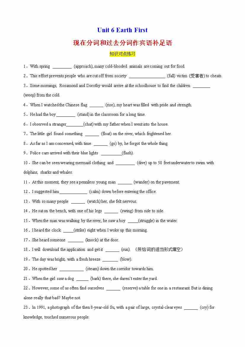 Unit 6 Earth First 语法Grammar 现在分词和过去分词作宾语补足语(原卷版)
