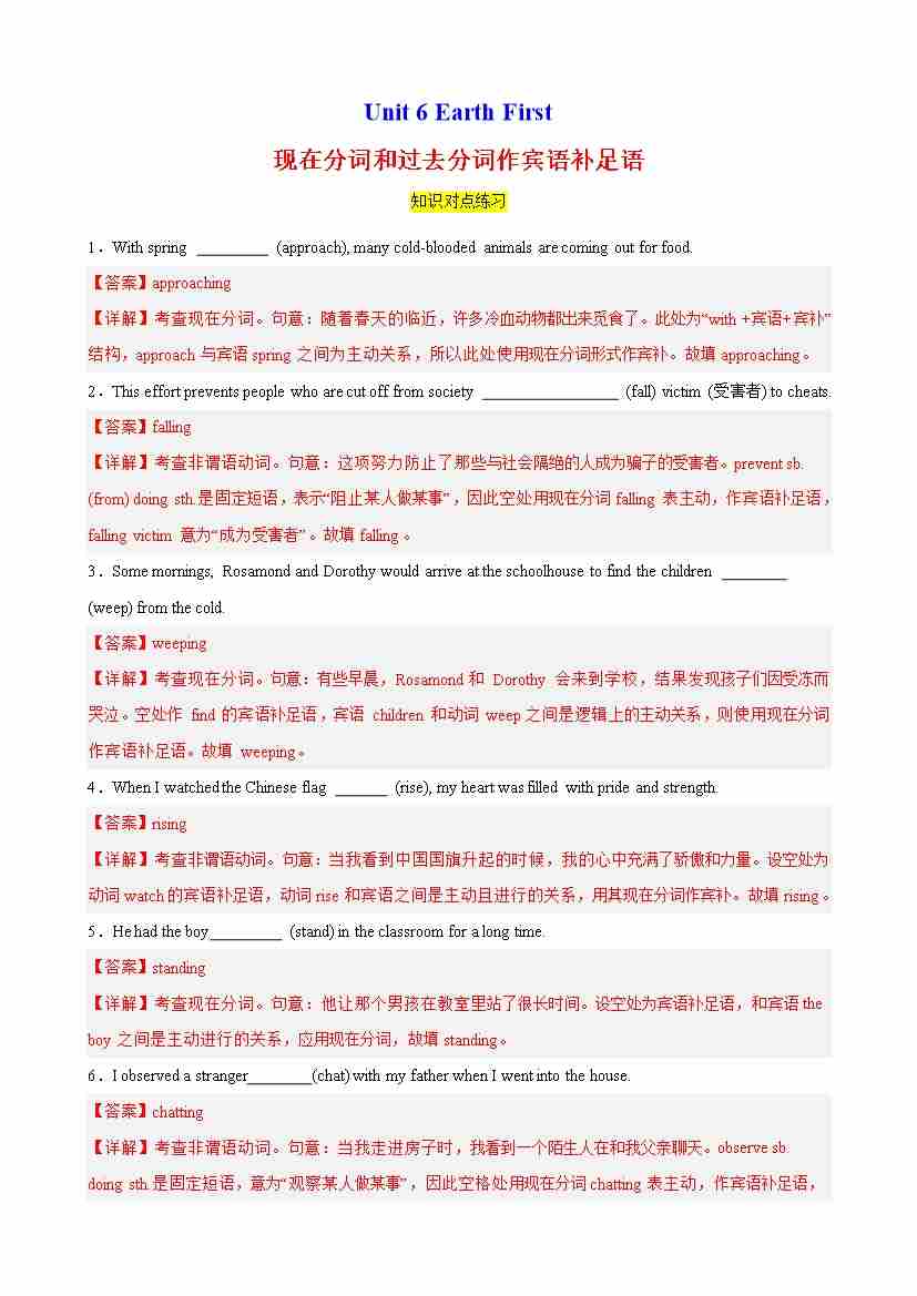 Unit 6 Earth First 语法Grammar 现在分词和过去分词作宾语补足语(解析版)